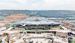 11月1日,建设中的西安东站站房主体工程。 近日,随着最后一块总重达4800吨的屋盖钢结构桁架顺利提升至33米高空指定位置,标志着这座由中国铁路西安局集团有限公司建设,中铁第一勘察设计院、同济大学建筑设计研究院设计,中铁建设集团有限公司施工的特大型综合交通枢纽站房主体结构顺利完工,全面转入金属屋面...