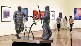 10月22日,观众在《今日丝绸之路国际美术邀请展》境外部分展区欣赏参展美术作品。 近日,由陕西省人民政府主办,陕西省文化和旅游厅、西安市人民政府承办的第十一届丝绸之路国际艺术节——今日丝绸之路国际美术邀请展在陕西省美术博物馆开展。本次美术邀请展以“丝路传情,美美与共”为展览主题,共展出来自79个国...