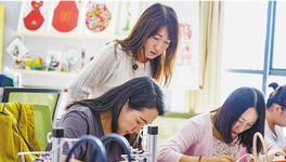 在西安市莲湖区残疾人创业孵化服务中心手工文创产品研发中心,贾宪华(左二)指导大家制作螺钿胸针(资料照片)。 “这个蝴蝶胸针好别致,别在衣服上拍照再合适不过了!”11月3日,西安市“长安十二时辰”主题街区的一个摊位上,琳琅满目、造型独特的螺钿胸针吸引了不少游客。有人拿着胸针细细欣赏,有人拿出手机拍照...