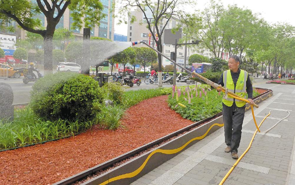 十四运在即,西安市将深化城市精细化管理和城市运行安全工作,开展“三个活动”,即“扮靓我的城”“擦亮我的城”“点亮我的城”活动,调动各级党政机关、企事业单位、社会团体、社团组织、驻地部队和市民群众等一切可以调动的力量共同参与,巩固前期景观绿化、市容环境秩序提升整治等工作成果,进一步提升城市品质。图为绿化人员进行城区绿植保养。 巴岩 摄