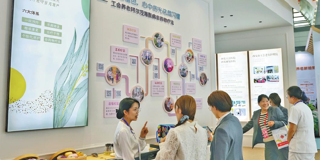 9月19日,在第三届西安国际养老产业博览会上,参观者在西安工会医院展厅了解工会养老阿尔兹海默病非药物疗法。 9月19日至21日,由西安市人民政府、陕西省民政厅共同主办的第三届西安国际养老产业博览会在西安国际会展中心举办。本届博览会展览面积达32000平方米,设置智慧养老、医养结合、银发文旅等12大主题展区,吸引了500余家国内外企业参展。&nb...