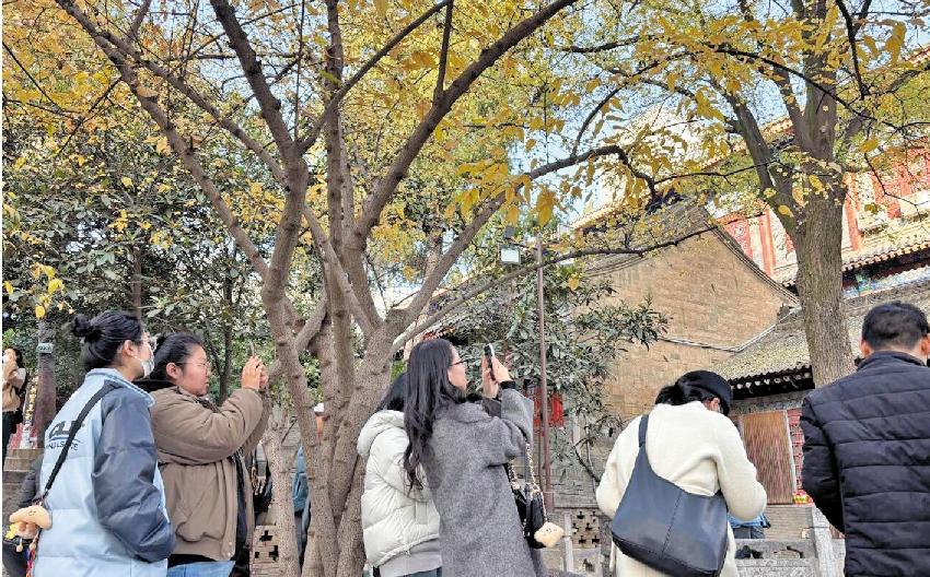 12月24日,西安大兴善寺内,一株百年蜡梅迎寒盛开,金黄的花瓣缀满枝头,为萧瑟冬日添上了一抹亮色。 寒风中,梅香悠悠飘散,与古寺的红窗黛瓦相映成趣,勾勒出一幅雅致的冬日画卷。不少游客特意赶来赏梅,有人举着相机选角度定格美景,有人凑近花枝轻嗅梅香,还有人指着枝头的繁花和同伴低声赞叹,欢声笑语为清幽古寺添了几分热闹。 这株...
