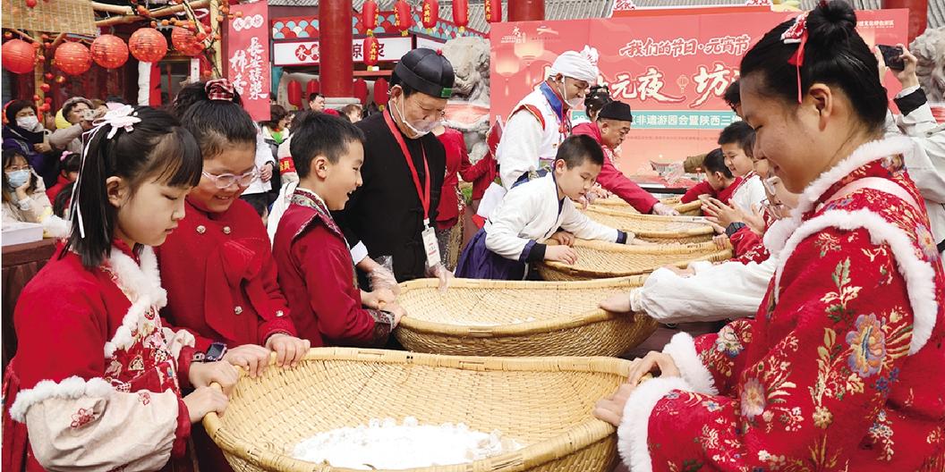 3月3日,长安上元夜,坊间送福来——2026年新城区非遗游园会暨陕西三地非遗闹元宵活动在永兴坊举行。提线木偶《狮子喷火》、陕北走百病·过桥祛灾、关中踏歌·上元福舞等特色表演轮番上演,锤丸纳福、面茧祈福、陕西三地摇元宵等互动体验趣味十足,秦腔板胡手工制作、关中浮雕彩塑、李氏布艺、姚记手工花馍等非遗技艺集中亮相,让市民沉浸式感受非遗魅力。 巴新建 摄