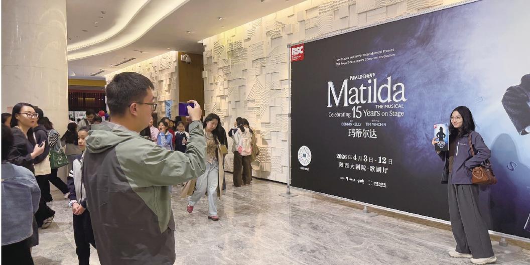 英国国宝级、伦敦西区原版音乐剧《玛蒂尔达》于4月3日至12日在西安上演。《玛蒂尔达》西安站共有13场演出,每场演出将随机掉落3种不同主题的体验场——勇敢女孩场、英式体验场、重返童年场。互动环节精彩纷呈,惊喜不断。 图为市民齐聚陕西大剧院,共同感受这部英文原版音乐剧的魅力,重温经典或接受艺术启蒙。 焦一鹤 摄