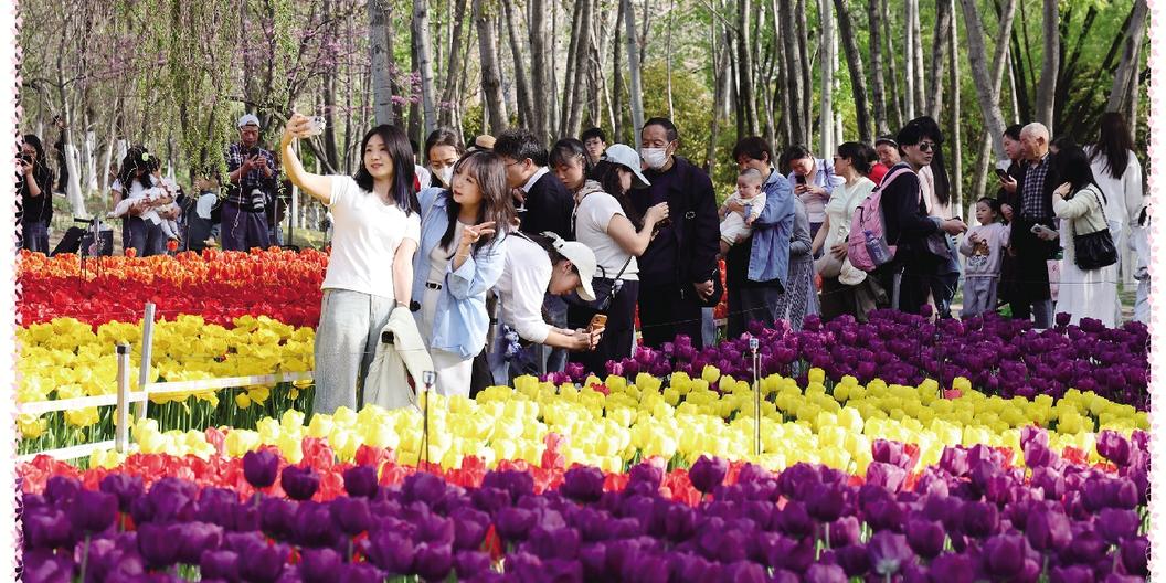 4月8日,市民游客在西安植物园郁金香花海赏花。 近日,西安植物园第34届春季花展正式拉开帷幕。本届花展以郁金香为主角,与你相“郁”为主题,精选鹦鹉型、重瓣型、饰边型、百合型4大类30多个优质品种,涵盖红、黄、粉、紫、白、复色等多种色系,布展面积约5000平方米,总栽植量达20万余株。花展持续至5月5日,邀请广大市民和游客,共赴这场与郁金香的浪漫...