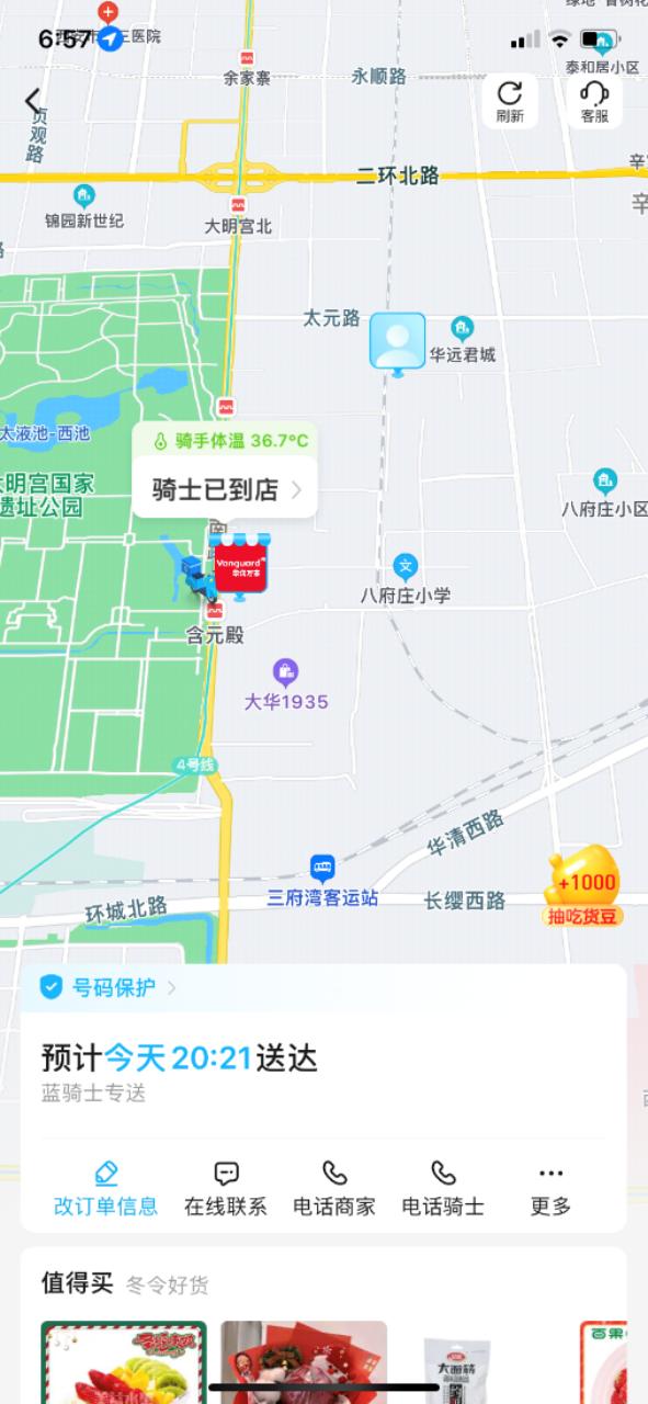 根据饿了么的数据显示,西安区域超过9成商户已开通饿了么“无接触配送”。用户在点单后,饿了么App的配送详情页即可查看对应骑手的体温记录等信息。