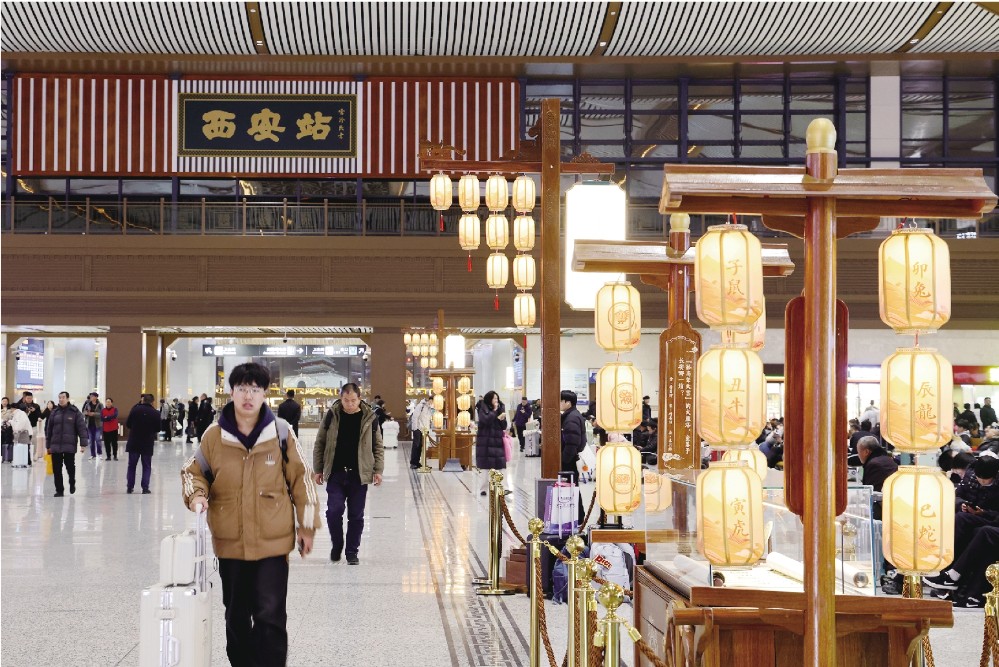 为了进一步弘扬中华传统文化,西安站精心设计了两组主题文化灯笼,以鲜活的方式展现传统符号,使其融入现代候乘空间。这种创新的传播方式,让传统文化不再遥不可及,而是成为旅客身边触手可及的风景。
