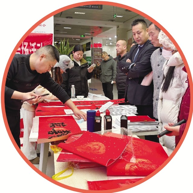 “这副春联送给您,祝您新春快乐,阖家幸福!”志愿者将饱含祝福的春联与“福”字送到旅客手中,用传统文化传递工会温情,让广大劳动者在返乡途中感受到新春的喜庆与“娘家人”的贴心关怀。