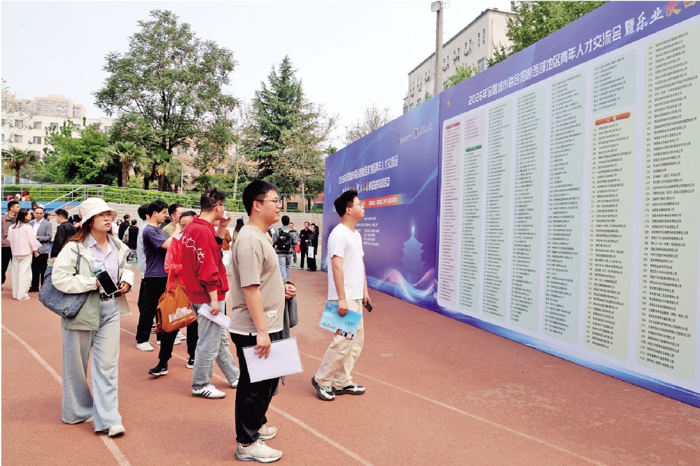 本报讯 (巴岩) 4月15日,由人力资源和社会保障部全国人才流动中心、陕西省人力资源和社会保障厅联合主办的2026年全国城市联合招聘西部地区青年人才交流会暨“乐业陕西‘就’在三秦”春招进校园活动在西安举办。